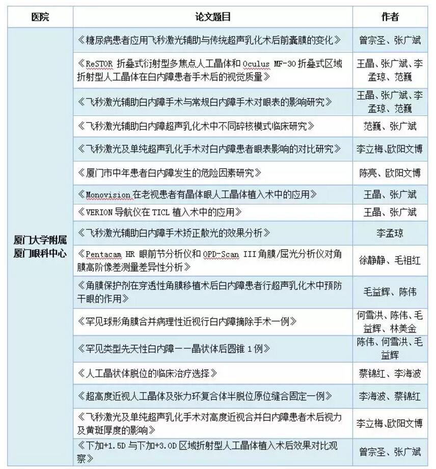 廈門眼科中心憑借學(xué)科優(yōu)勢,專家們積極向大會投稿。經(jīng)評審,6篇論文被錄用為論文發(fā)言,17篇論文被錄用為電子壁報。