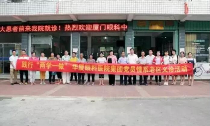 2016年6月25日,在紀(jì)念中國(guó)共產(chǎn)黨誕辰95周年之際,結(jié)合“兩學(xué)一做”,集團(tuán)黨委開(kāi)展“重走紅軍路,送醫(yī)到老區(qū)”活動(dòng)。華廈眼科醫(yī)院集團(tuán)黨委書(shū)記陳寶貴組織全體黨員到閩西革命老區(qū)龍巖連城新泉鎮(zhèn),慰問(wèn)當(dāng)?shù)匮奂怖щy戶(hù),并為300多位眼疾患者做篩查,深受老區(qū)群眾贊譽(yù);