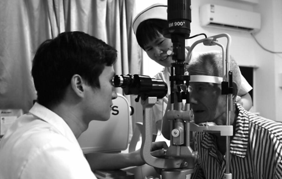88歲的趙桃芳老人通過(guò)廈門(mén)眼科中心設(shè)立的“公益基金”做了白內(nèi)障手術(shù),正在接受術(shù)后復(fù)查