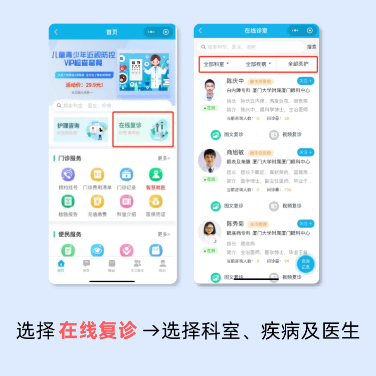 為方便市民群眾就醫(yī)就診,滿足人民群眾多層次多樣化的眼健康需求,6月1日起,廈門眼科中心還將開展為期一個(gè)月的“互聯(lián)網(wǎng)醫(yī)院復(fù)診免費(fèi)活動(dòng)”,患者可通過互聯(lián)網(wǎng)醫(yī)院實(shí)現(xiàn)在線復(fù)診咨詢、線上開立檢查檢驗(yàn)項(xiàng)目及預(yù)約等服務(wù),減少院內(nèi)排隊(duì)時(shí)間,提升就診體驗(yàn)。
