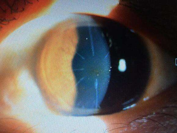 RK手術(shù)后患者眼角膜可見8條白色的放射狀切痕