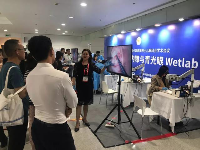 在wetlab操作區(qū),潘美華教授關(guān)于睫狀血管分離保留術(shù)的錄像視頻引發(fā)了吸引很多學(xué)院駐足觀看,圍觀的人群中還有兩位自來(lái)美國(guó)的專家,為了滿足眼科醫(yī)生的學(xué)習(xí)熱情,主展單位特別邀請(qǐng)潘美華教授在茶歇時(shí)間,親自為與會(huì)來(lái)賓示范了一次血管分離保留術(shù)的操作,操作區(qū)一時(shí)間人氣爆棚。另外在手術(shù)演示中出現(xiàn)了兩把由潘美華教授自主創(chuàng)新,并申請(qǐng)了專利的血管分離專用器械也受到學(xué)員們的關(guān)注,很多人在操作區(qū)詢問關(guān)于這兩把器械的相關(guān)問題。