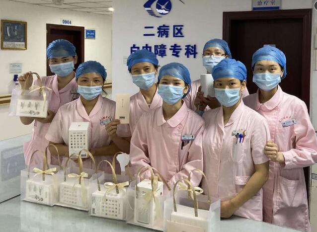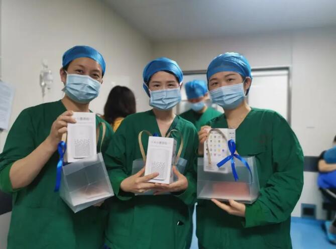 護(hù)理部主任許春麗表示:“今年因?yàn)橐咔榈脑?,護(hù)士們的工作壓力會(huì)更大,特別選擇了小愛(ài)同學(xué)智能機(jī)器人藍(lán)牙音響作為禮物,讓護(hù)士們?cè)诠ぷ髦喔玫姆潘尚那椤?rdquo;