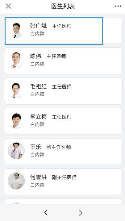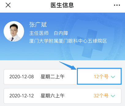 點(diǎn)擊“預(yù)約掛號”,選擇需要預(yù)約院區(qū)(如五緣院區(qū)),搜索或者選擇需要預(yù)約的科室(如白內(nèi)障科),選擇需要預(yù)約的醫(yī)生(如張廣斌醫(yī)生),確認(rèn)預(yù)約時(shí)間