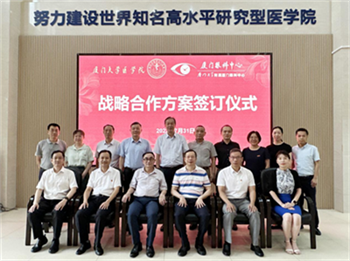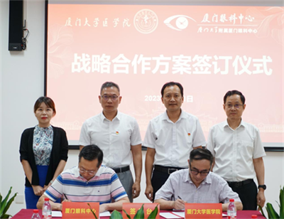 7月31日下午,廈門(mén)大學(xué)附屬?gòu)B門(mén)眼科中心與廈門(mén)大學(xué)醫(yī)學(xué)院在廈門(mén)大學(xué)翔安校區(qū)舉行戰(zhàn)略合作方案簽訂儀式,雙方簽署戰(zhàn)略合作協(xié)議并進(jìn)一步深化醫(yī)療、教學(xué)和科研領(lǐng)域的合作。廈門(mén)眼科中心董事長(zhǎng)蘇慶燦,中國(guó)科學(xué)院院士、廈門(mén)大學(xué)醫(yī)學(xué)院院長(zhǎng)韓家淮代表雙方進(jìn)行簽約。