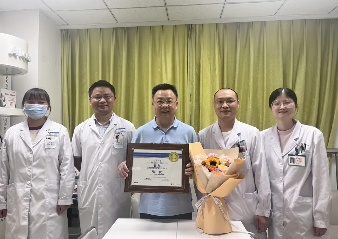 作為首批體驗(yàn)全新Clareon 疏水平臺(tái)材料三焦點(diǎn)老視矯正型人工晶體的患者,李大爺在揭開紗布的瞬間就驚喜不已。“看得清,真的不需要戴眼鏡了。”為了測(cè)試自己是否還需要眼鏡,李大爺還特地拿出手機(jī)來(lái)看,此時(shí)他正拿著手機(jī)興奮的說(shuō)道。