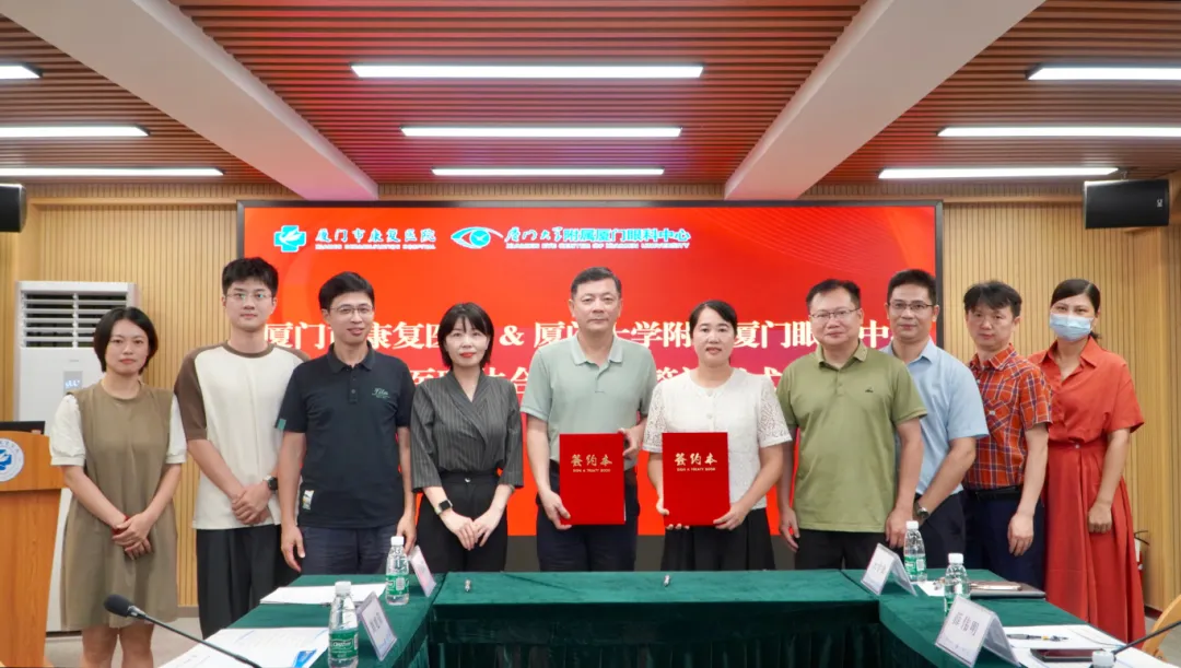 7月30日,廈門眼科中心與廈門市康 復(fù)醫(yī)院正式簽訂醫(yī)聯(lián)體合作協(xié)議。兩院建立醫(yī)聯(lián)體合作,旨在優(yōu)化區(qū)域醫(yī)療衛(wèi)生資源結(jié)構(gòu)布局,助力構(gòu)建“多病共防”模式,護(hù)航兒童青少年健康成長。廈門眼科中心黨委書記、業(yè)務(wù)副院長劉旭陽教授,廈門眼科中心執(zhí)行總經(jīng)理姚鄭玲玲,廈門市康 復(fù)醫(yī)院黨支部書記李亞蘭,廈門市康 復(fù)醫(yī)院副院長薛偉明等領(lǐng)導(dǎo)專家出席儀式。