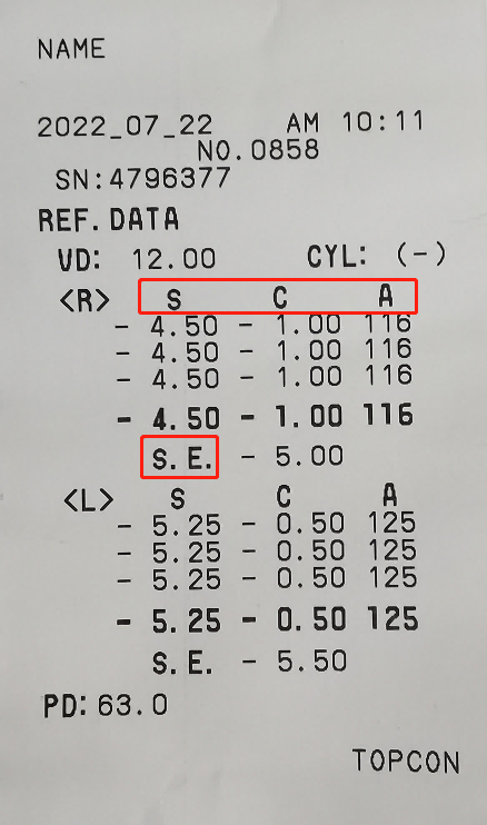 S.E.是指等效球鏡(S.E.=近視度數(shù)+1/2散光度數(shù)),為了保證檢查結果的準確性,每只眼睛的檢測一般會連測3次,zui后的結果是取3次檢測結果的平均值,就是建議矯正的屈光度數(shù),僅具有參考價值。