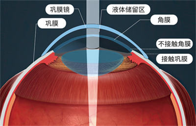 戴鞏膜鏡時,能使鏡片隔著球結(jié)膜完全搭在鞏膜(白眼球上),在鏡片后表面與角膜前表面之前形成一個幾近封閉的液體儲留區(qū)(儲留生理鹽水)。